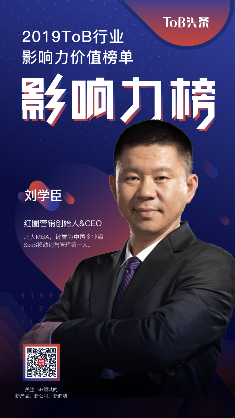 紅圈營銷創(chuàng)始人兼CEO劉學(xué)臣榮登“ToB行業(yè)2019影響力人物榜”